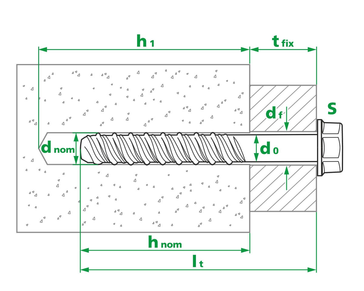 Анкер-шуруп - это упорный анкер, распорная зона которого представляет собой самонарезающую резьбу достаточной прочности для нарезания ответной резьбы в бетонном или каменном строительном основании.В отличие от механического или химического анкера работает за счет геометрии резьбы и не создает давление на материал.Резьба врезается в бетон.Ключевые преимущества:1) Лёгкость монтажа за счёт конструкции;2) Нагрузка сразу после монтажа;3) Высокая надёжность узла крепления и высокие показатели на вырыв;4) Сниженные краевые и осевые расстояния между анкерами. Не создает напряжение в материале;5) Нет "торчащей" резьбы;6) Возможность демонтажа и повторного использования.