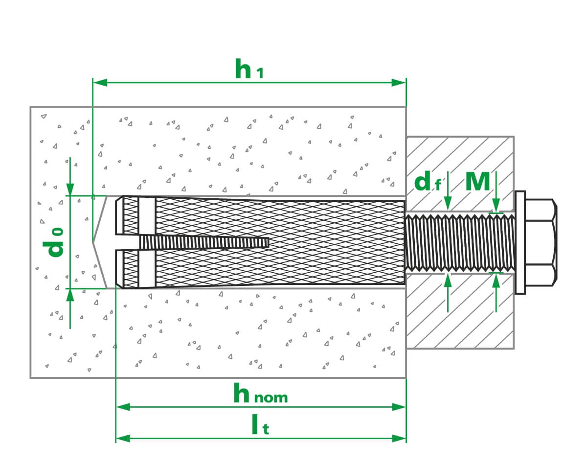 Латунная цанга используется для надежного крепления систем подвесных потолков к различным прочным материалам основания, таким как бетон, полнотелый кирпич и другим. Цанга изготовлена из латуни, устойчива к коррозии. Особенности конструкции: • Цанга представляет собой полый цилиндр. • С одной стороны имеется внутренняя резьба, с другой стороны распорная зона. Принцип работы:- при забивании цанги происходит распирание сегментов в просверленном отверстии. За счет этого предотвращается прокручивание, и цанга надежно фиксируется. - При ввинчивании крепежа с метрической резьбой (болт, винт, шпилька) происходит дополнительное распирание и фиксация. Монтаж:1. Просверлите отверстие по размерам, указанным изготовителем. 2. Очистить его. 3. Вставьте анкер в отверстие, забить с помощью молотка. 4. Ввинтите крепеж с метрической резьбой (болт, винт, шпилька) с навешенной на него монтируемой деталью. Латунная цанга обеспечивает прочное и надежное крепление.