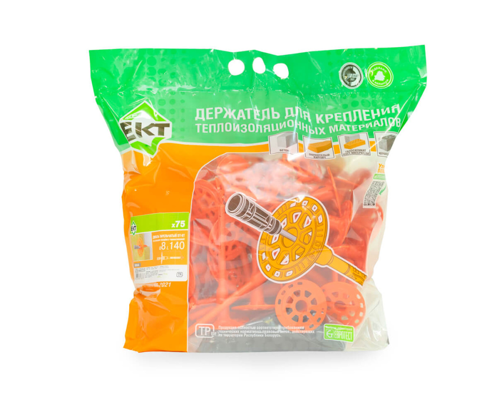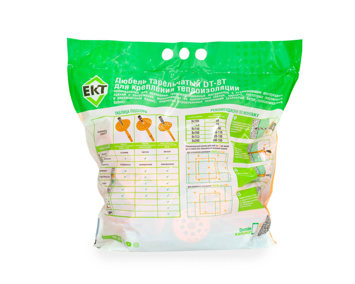 Дюбель тарельчатый 8x140 со стальным гвоздем с высокоэфф. термоголовкой DT-8T, ЕКТ (пакет/75шт)