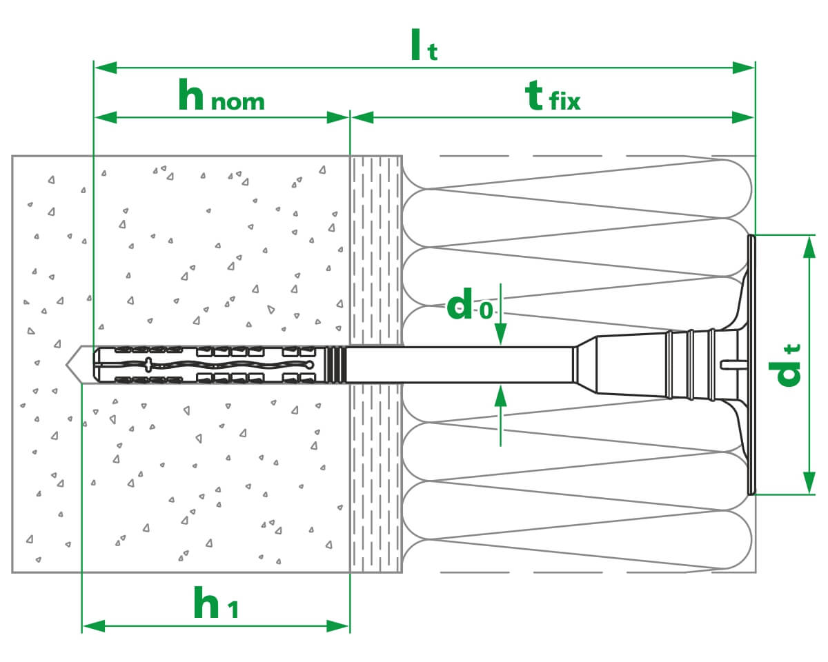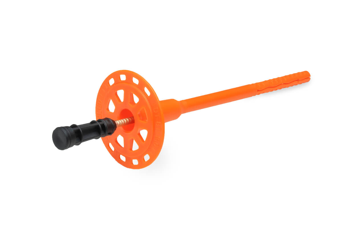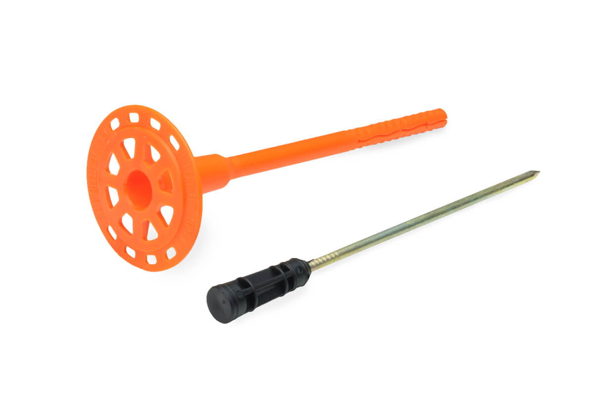 Назначение: для крепления теплоизоляционных материалов в бетон, полнотелый кирпич, пустотелый керамический кирпич, газосиликат и керамзитобетон.Свойства: крепежная система состоит из распорного дюбеля диаметром 8 мм с удерживающим диском диаметром 60мм. Комплектуется гвоздем из оцинкованной стали с высокоэффективной термоголовкой. 1) Высокоэффективная термоголовка. Снижает теплопотери. До 6 раз эффективнее стандартных дюбелей;2) Уникальная конструкция распорной зоны. Обеспечивает монтаж в любой стеновой материал с нагрузкой на вырыв до 200 кг;3) Видимая маркировка. Позволяет определить размер в смонтированном состоянии;4) Рёбра жесткости. Выдерживают нагрузку утеплителя до 250 кг;5) Перфорированная шляпка. Гарантирует надежность сцепления штукатурного слоя с теплоизоляцией. Материал изготовления:Дюбель изготовлен из полипропилена, гвоздь - из оцинкованной стали, термоголовка - из нейлона.