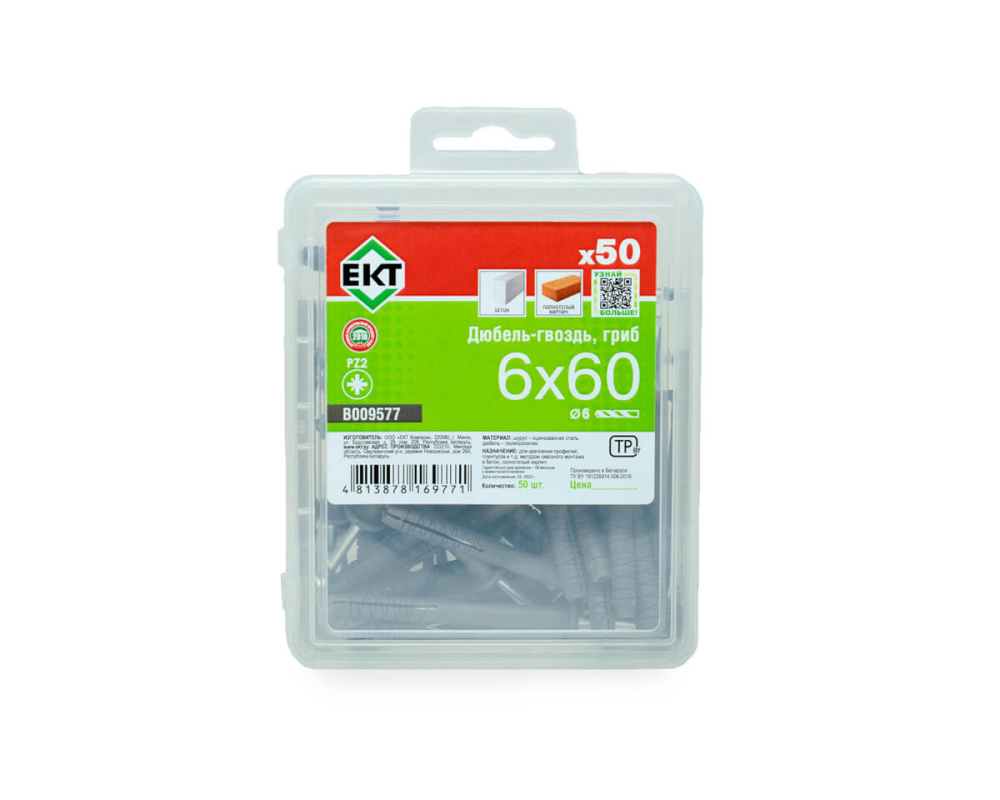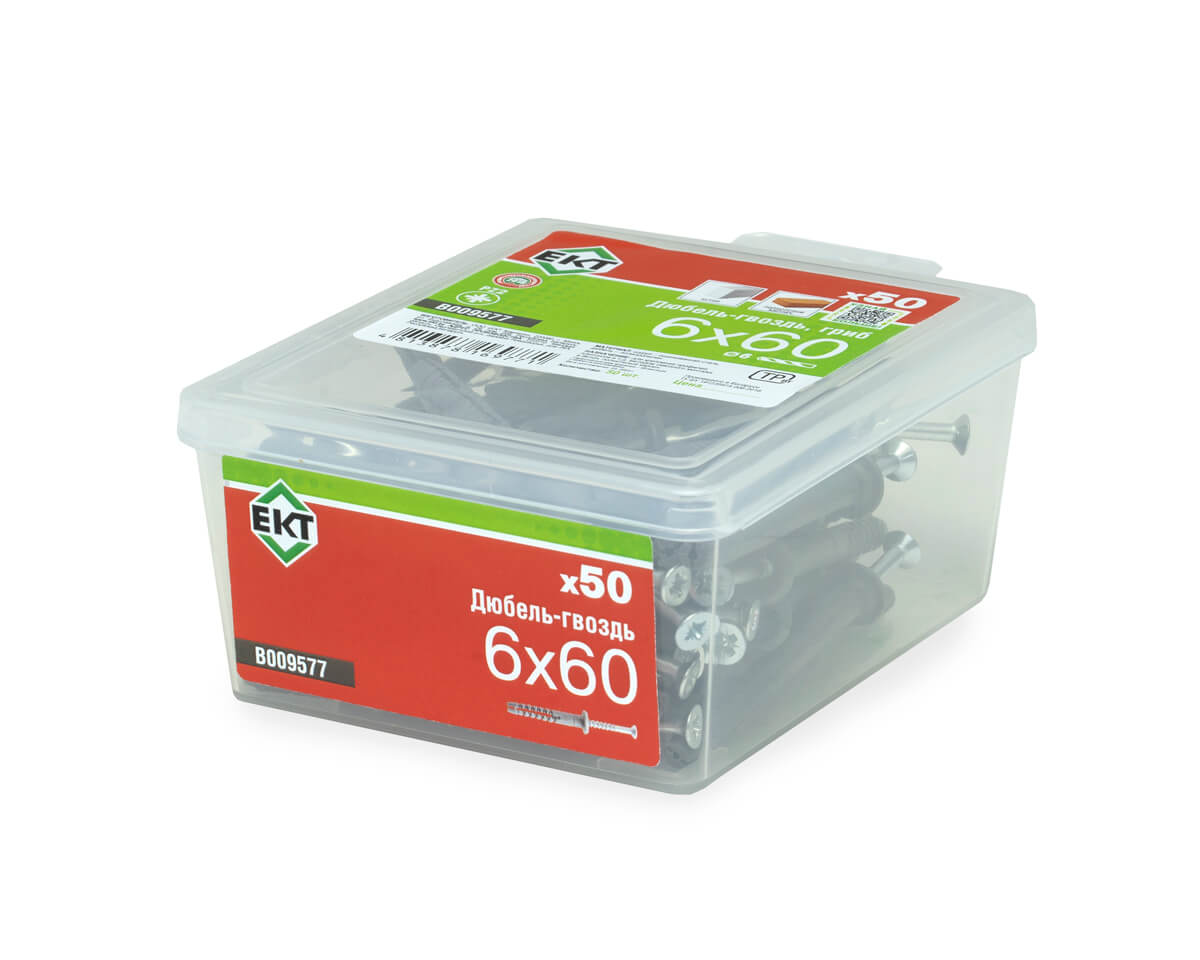 Дюбель-гвоздь GL, 6x60 гриб, п/п, ЕКТ (пласт.конт./50шт)