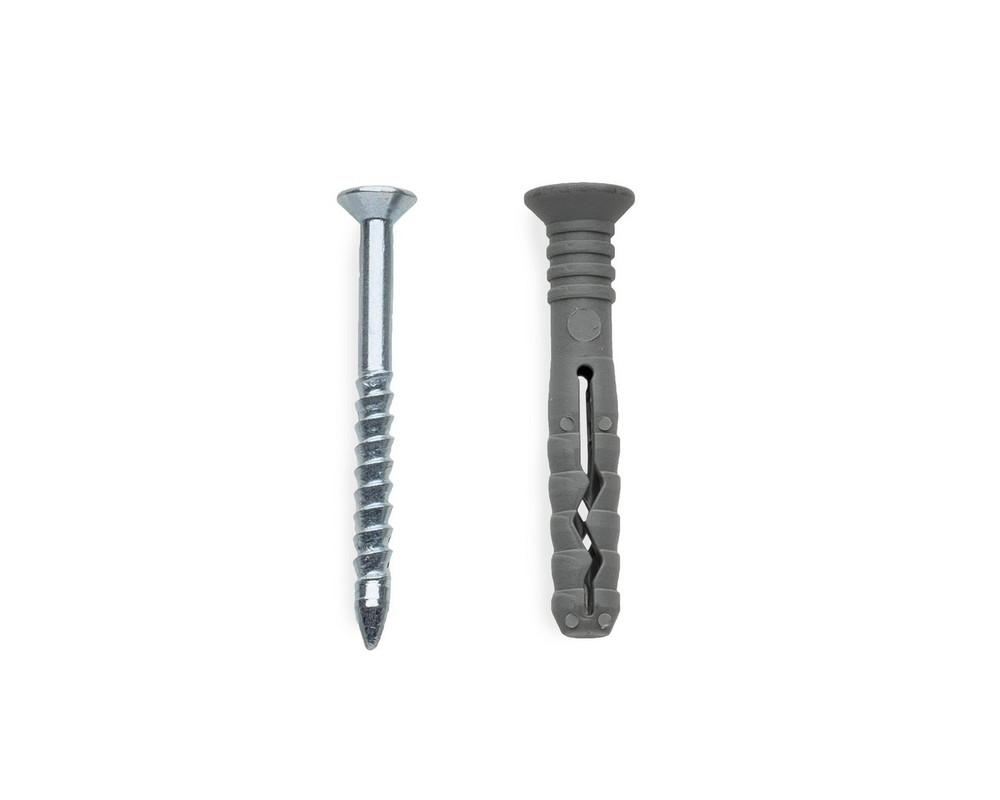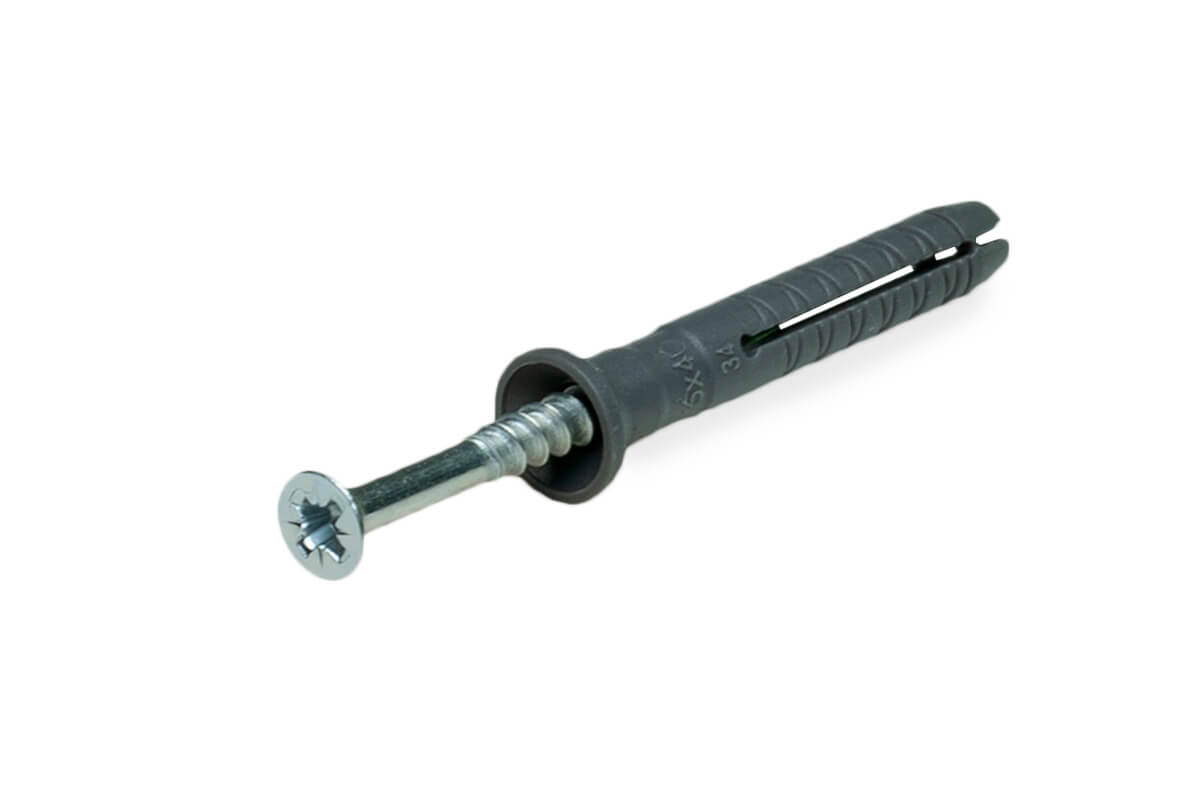 Гвоздевой дюбель используется для сквозного монтажа оконных рам, дверных коробок, реек, карнизов к бетону, строительному камню, полнотелому кирпичу и др.Материалы: распорный дюбель - полипропилен, гвоздь - оцинкованная сталь.Особенности конструкции: система состоит из распорного дюбеля и гвоздя с винтовой нарезкой. Дюбель имеет предохранитель, препятствующий преждевременному распиранию при забивании гвоздя, а также обратную резьбу в хвостовой части, не позволяющую вывинчиваться дюбелю вместе с гвоздем. Потайной бортик дюбеля позволяет производить монтаж заподлицо в закрепляемой детали. Распорная часть дюбеля состоит из двух сегментов. На шляпке гвоздя крестовой шлиц, позволяющий осуществлять демонтаж или юстировку конструкции.Принцип работы: при забивании гвоздя дюбель равномерно распирается в стенках отверстия. Монтаж:- Просверлить отверстие по размерам, указанным изготовителем и очистить его. - Установить дюбель с монтируемой деталью методом сквозного монтажа и ударом молотка забить в него гвоздь.- При работе с пористым камнем или пустотелыми блоками длину дюбеля выбирают таким образом, чтобы зона распирания дюбеля попадала хотя бы в одну из перемычек строительного материала.- При необходимости затянуть крепежный элемент до упора с помощью отвертки или шуруповерта.