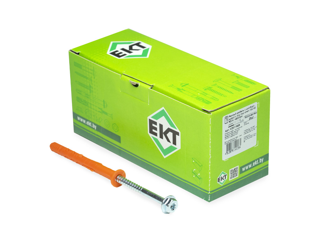 Рамный (фасадный) дюбель ЕКТ RD предназначен для крепления различных изделий методом сквозного монтажа к бетону, полнотелому и пустотелому кирпичу, газобетону и керамзитобетонным блокам.СВОЙСТВА И ПРЕИМУЩЕСТВА: - Универсальное применение. Подходит для основных стеновых материалов.- Конструкция дюбеля разработана для достижения максимальных нагрузок в полнотелых материалах силой трения, а в пустотелых – связыванием в узел (анкеровка формой).- Материал изготовления гильзы – нейлон. Обеспечивает возможность монтажа в широком диапазоне температур с расчетным сроком службы 50 лет.- Шуруп из углеродистой стали класса прочности 8.8 со шлицем Torx 40 и специальной резьбой гарантирует установку и высокие нагрузки дюбеля.МАТЕРИАЛЫ:- Шуруп - оцинкованная сталь, прочностью 8.8- Дюбель – нейлонПРИМЕНЕНИЕ:- Установка кронштейнов систем вентилируемых фасадов;- Монтаж оконных рам и дверных коробок;- Крепление кондиционеров, антенн, вентиляции и прочего оборудования.