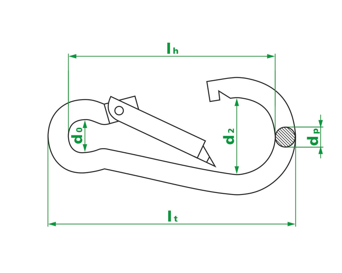 Предназначен для ремонта и быстрого соединения цепей и тросов. Не предназначен для подъема и не следует использовать в подъемных операциях. Пружина для предотвращения открытия: карабин оснащен пружинным замком, который предотвращает его случайное открытие, обеспечивая безопасность в процессе использования.Материал изготовления: алюминий.Размер определяется по сечению проволоки, из которой он изготовлен. Соответствует стандарту DIN5299С.Приводимые значения рабочей нагрузки рассчитаны от разрушающих нагрузок с коэффициентом безопасности 2,0.