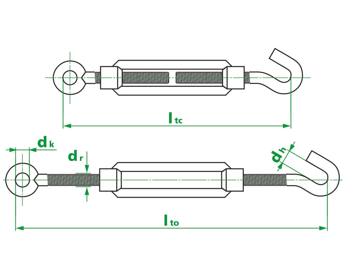 Талреп DIN 1480 служит для изменения длины, натяжения, и регулировки натяжения цепей, тросов. Широко используется при установке и креплении мачт и антенн. Позволяет оперативно изменять длину цепи, троса.Изготовлен из углеродистой стали. Поверхность оцинкована.Существуют следующие типы талрепов:- кольцо-кольцо- кольцо-крюк- крюк-крюкНе предназначен для подъема.Приводимые значения рабочей нагрузки рассчитаны от разрушающих нагрузок с коэффициентом безопасности 2,0.
