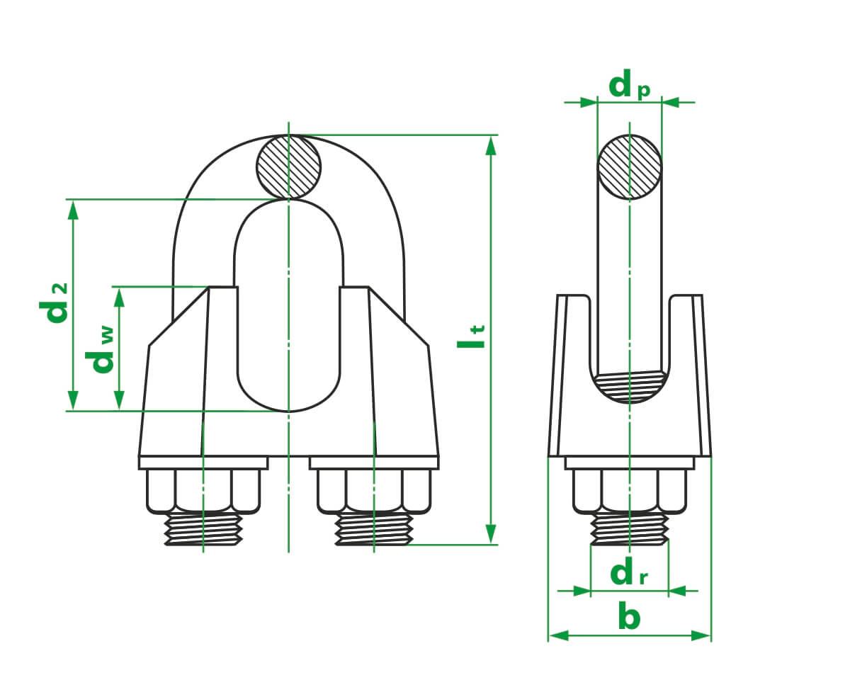 Усиленный зажим канатный DIN 1142 — предназначен для соединения, крепления и создания петель тросов и канатов при монтаже ответственных конструкций при проведении такелажных работ. Отличается от зажима DIN 741 более массивным корпусом и более надежным закреплением канатов за счет наличия на гайке пресс-шайбы. Изготовлен из высокопрочной легированной стали. Гальваническое покрытие. Зажим канатный, усиленный соответствует DIN 1142, что гарантирует соответствие высоким требованиям качества. При монтаже соединения рекомендуется использовать минимум 3шт на узел.