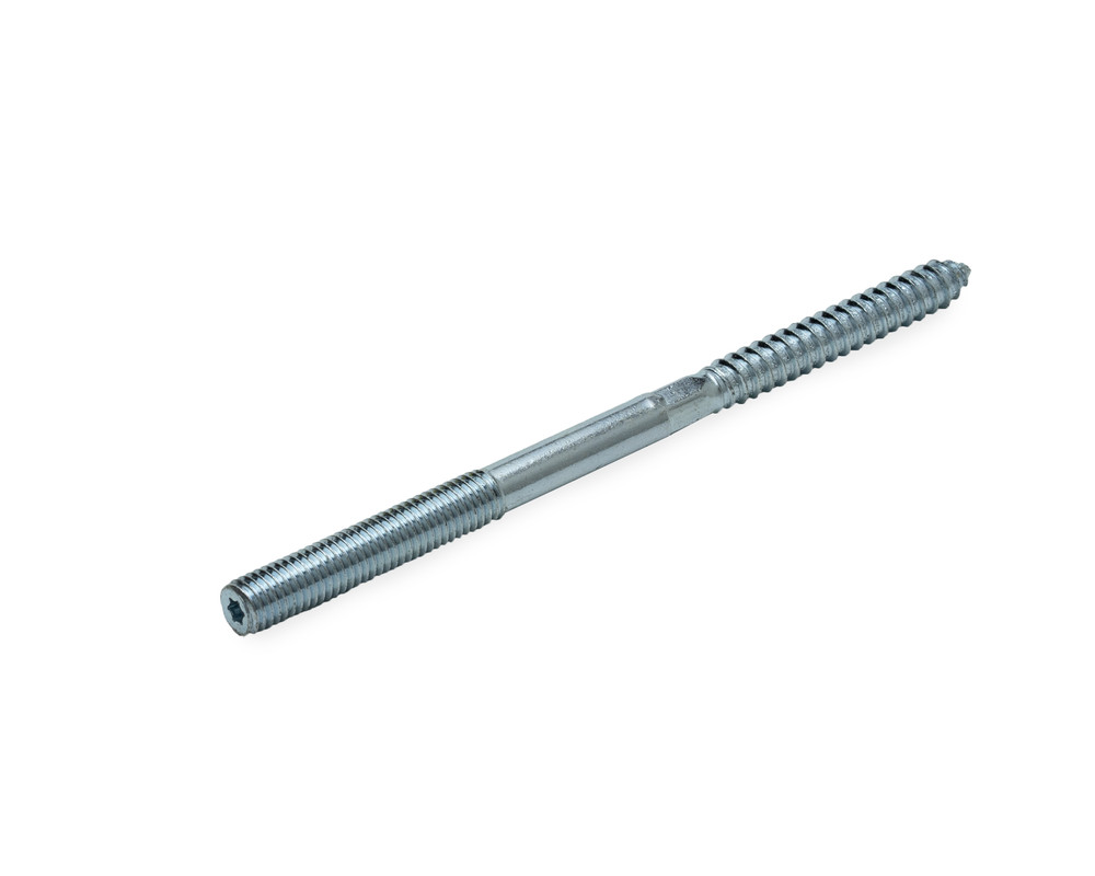 Шуруп-шпилька предназначена для крепления хомутов для труб, сантехники и др. ко всем видам бетона и кирпичной кладки (в комбинации с соответствующим дюбелем) и без дюбеля к дереву и ДСП.Изготовлена из гальванически оцинкованной стали. Особенности конструкции: • Крепежный элемент имеет шуруп с одной стороны и шпильку с метрической резьбой с другой, разделенные шестигранной поверхностью (за исключением размеров 8х60 и 10х60). • Для удобства завинчивания на конце шпильки, имеющем метрическую резьбу, может располагаться шлиц Torx T25.МОНТАЖ: • Просверлить отверстие по размерам, указанным изготовителем и очистить его. • Установить в отверстие дюбель и ввинтить шуруп-шпильку. Монтируемые детали можно заменять в случае необходимости, не нарушая анкеровки шурупа-шпильки. Чтобы обеспечить оптимальную несущую способность, следует обращать внимание на следующее:-соответствие размеров дюбеля и шурупа-шпильки;-соблюдение глубины завинчивания; -шуруп должен выходить за кончик дюбеля на величину диаметра шурупа.В пористых и пустотелых материалах рекомендуется производить сверление только методом вращения.