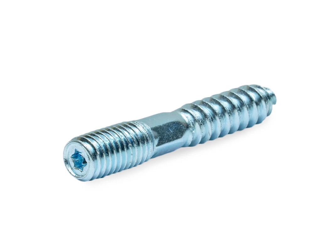 Шуруп-шпилька предназначена для крепления хомутов для труб, сантехники и др. ко всем видам бетона и кирпичной кладки (в комбинации с соответствующим дюбелем) и без дюбеля к дереву и ДСП.Изготовлена из гальванически оцинкованной стали. Особенности конструкции: • Крепежный элемент имеет шуруп с одной стороны и шпильку с метрической резьбой с другой, разделенные шестигранной поверхностью (за исключением размеров 8х60 и 10х60). • Для удобства завинчивания на конце шпильки, имеющем метрическую резьбу, может располагаться шлиц Torx T25.МОНТАЖ: • Просверлить отверстие по размерам, указанным изготовителем и очистить его. • Установить в отверстие дюбель и ввинтить шуруп-шпильку. Монтируемые детали можно заменять в случае необходимости, не нарушая анкеровки шурупа-шпильки. Чтобы обеспечить оптимальную несущую способность, следует обращать внимание на следующее:-соответствие размеров дюбеля и шурупа-шпильки;-соблюдение глубины завинчивания; -шуруп должен выходить за кончик дюбеля на величину диаметра шурупа.В пористых и пустотелых материалах рекомендуется производить сверление только методом вращения.