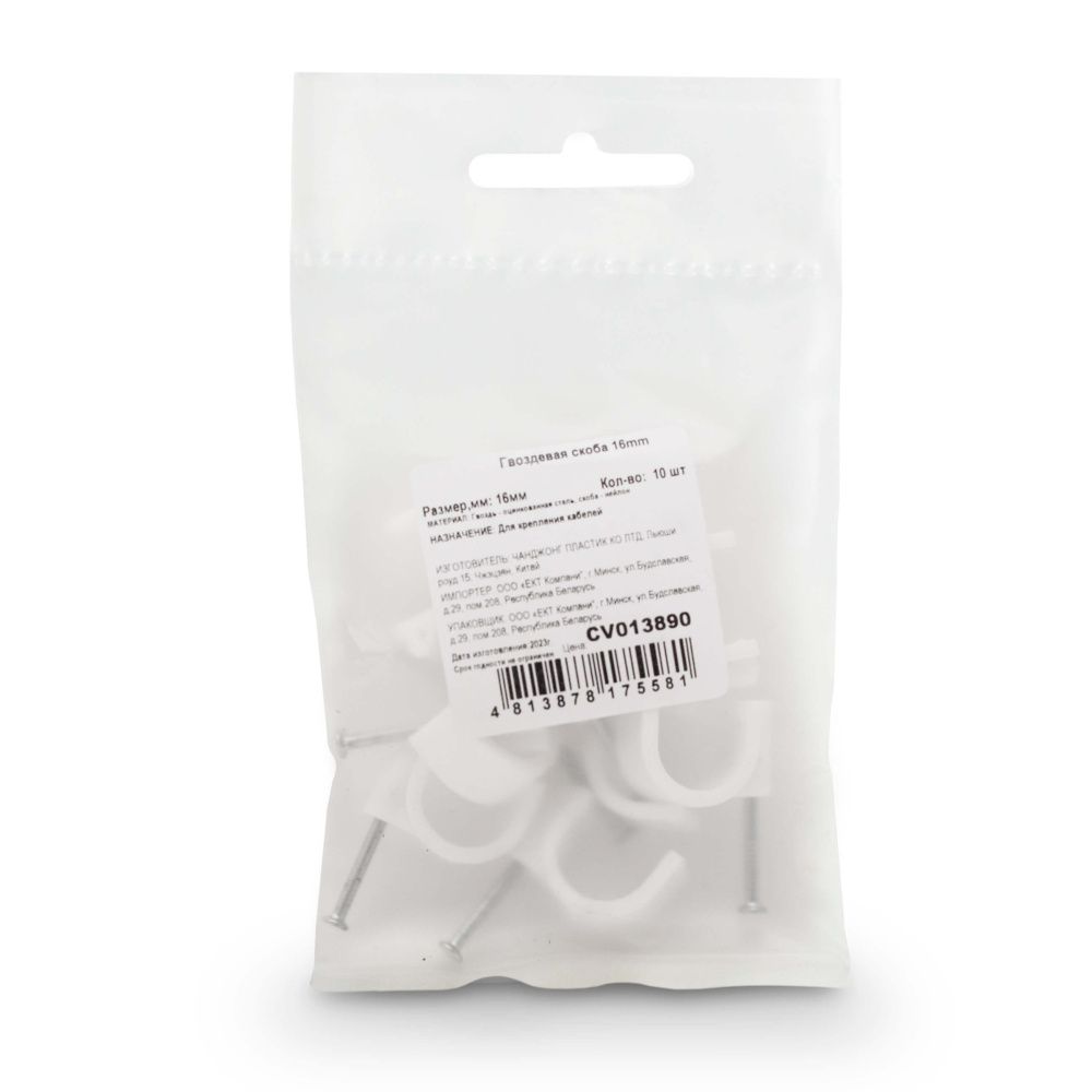 Предназначена для крепления проводов и электрокабелей к ДСП, тонковолокнистым плитам, дереву, пенобетону, полнотелым гипсовым плитам и др. оштукатуренным поверхностям.Материалы: скоба изготовлена из полипропилена, гвоздь - из оцинкованной закаленной стали.Свойства: диапазон зажима позволяет крепить провода диаметром от 3 до 20 мм скобами. Скоба имеет компактную форму и обладает прочностью на разрыв и удар. Выдерживает температуру от -30°С до +80°С.Монтаж: - Установить скобу в месте фиксации провода. - Вбить гвоздь молотком. Гвоздевая скоба – это надежное решение для крепления проводов и электрокабелей, подходящее для профессионального и бытового использования.