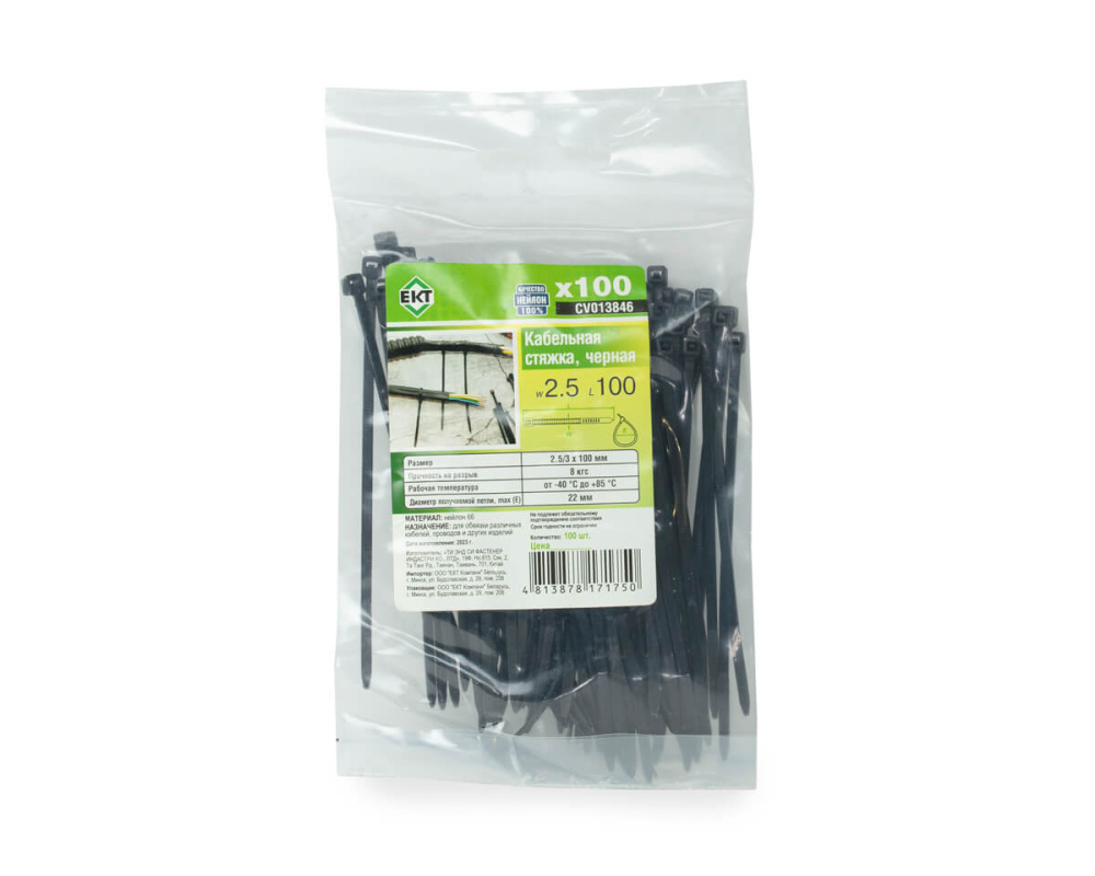 Кабельная стяжка ЕКТ - надежное решение для обвязки различных кабелей, проводов и других изделий при электромонтажных работах. Материал изготовления: Кабельная стяжка изготовлена из качественного нейлона (полиамида 66) с зубчатыми углублениями и удобным замком-застежкой на конце. Характеристики: • Устойчивость к любым погодным условиям эксплуатации (от -40℃ до +85℃). • Высокая стойкость к ультрафиолетовому излучению, что обеспечивает долгий срок эксплуатации на открытом солнце. • Высокая прочность и эластичность при монтаже, облегчая установку и обвязку кабелей. • Устойчивость к смазочным материалам и органическим растворителям. • Электроизоляционная стойкость и отсутствие горючести по стандарту UL-94V-2, обеспечивает безопасность при использовании. Стяжка кабельная подходит для использования в электромонтажных работах, обеспечивая надежную фиксацию кабелей и их защиту от нежелательного перемещения. Будьте уверены в качестве и надежности этого изделия, оно разработано с учетом требований современных инженерных решений.