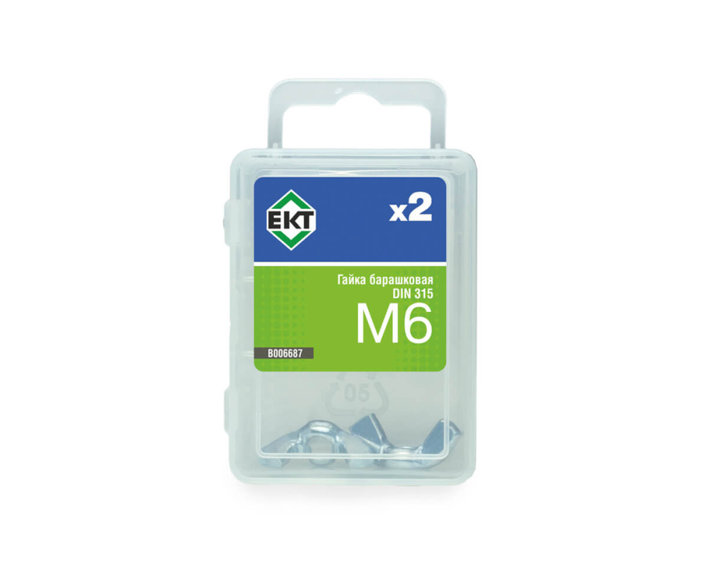 Гайка барашковая М6 DIN 315, оцинкованная (упак/2шт)