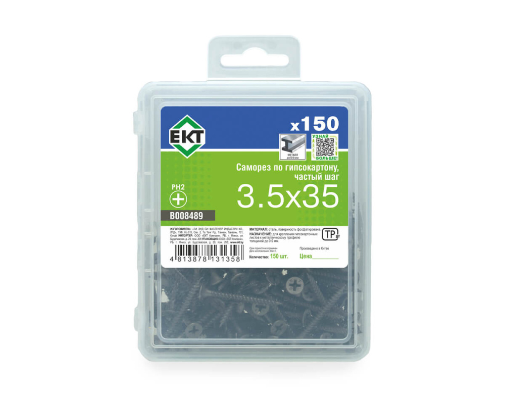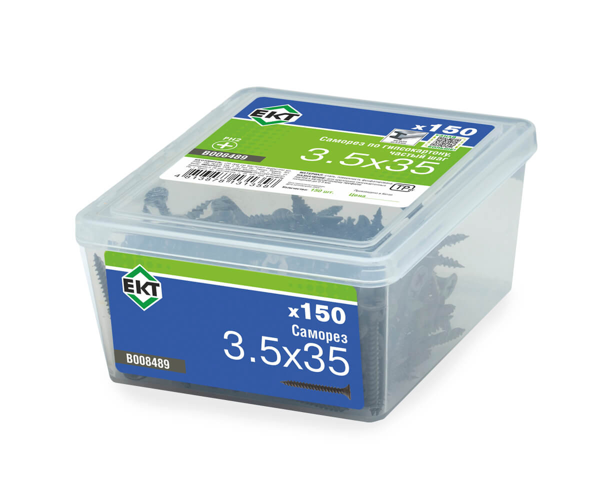 Саморез по ГК, частый шаг 3,5х35 в пласт. контейнере (упак/150шт)