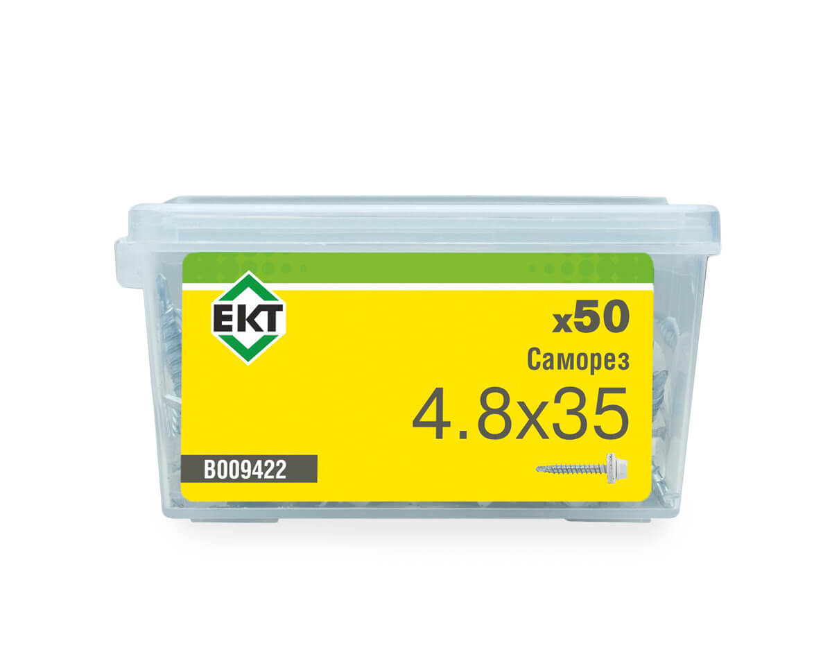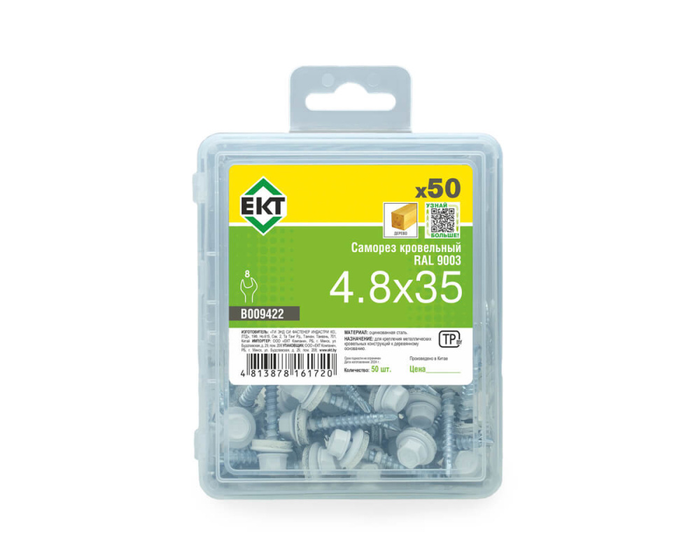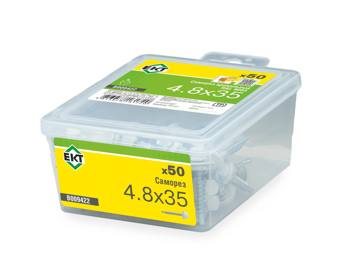 Саморез кровельный с резин. прокл. 4,8х35 сверло PT1, RAL 9003 , в пласт. контейнере, ЕКТ (упак/50шт)