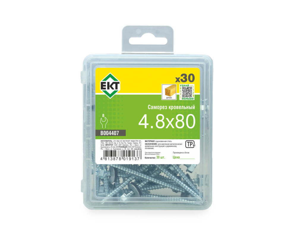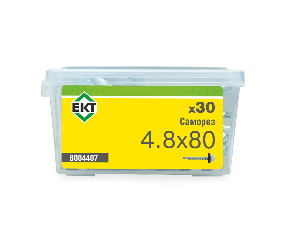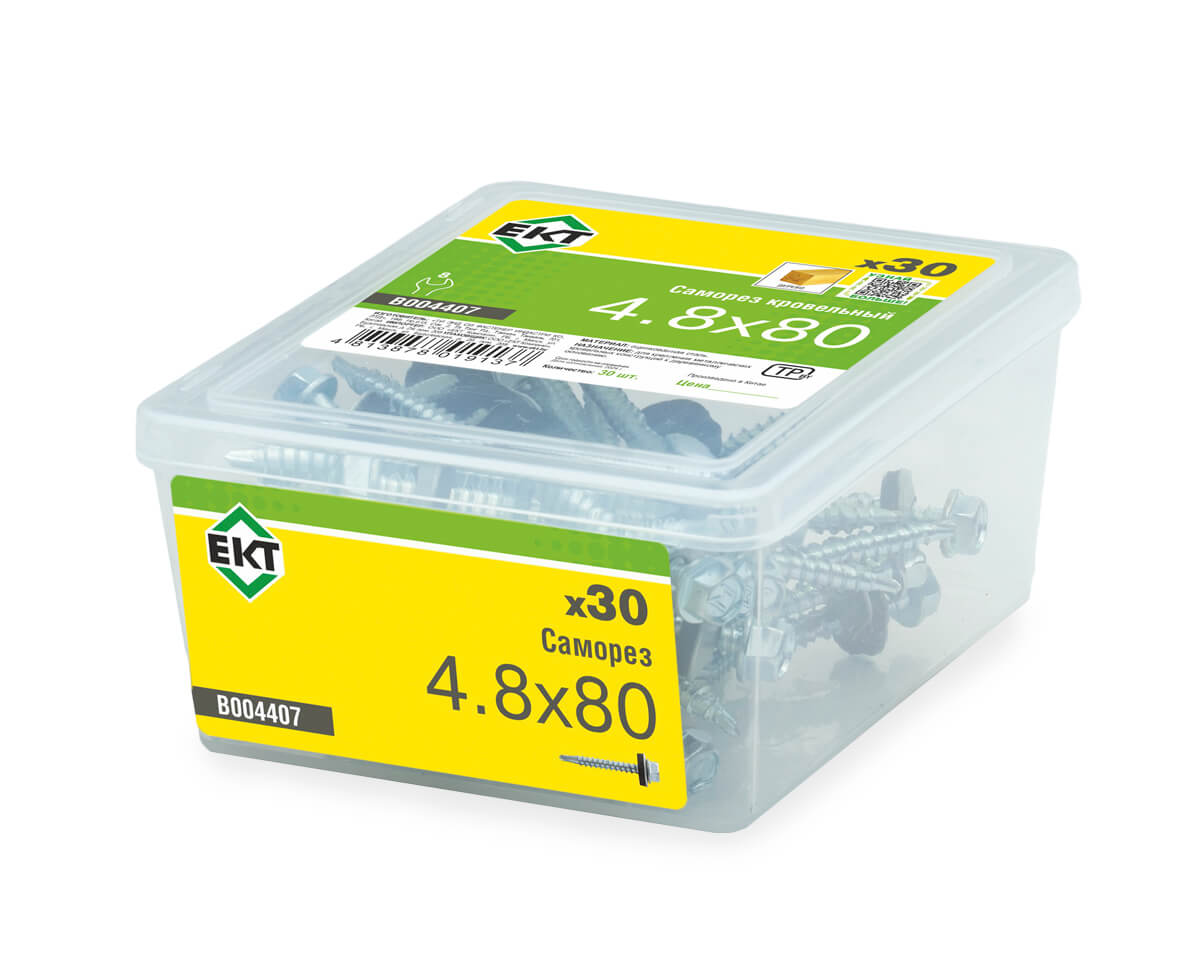 Саморез кровельный 4,8х80 сверло, цинк, с резиновой прокладкой, в пласт. контейнере (упак/30шт)