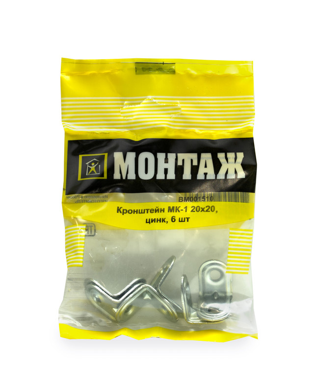 Кронштейн 01, 20x20мм, цинк (пакет/6шт)
