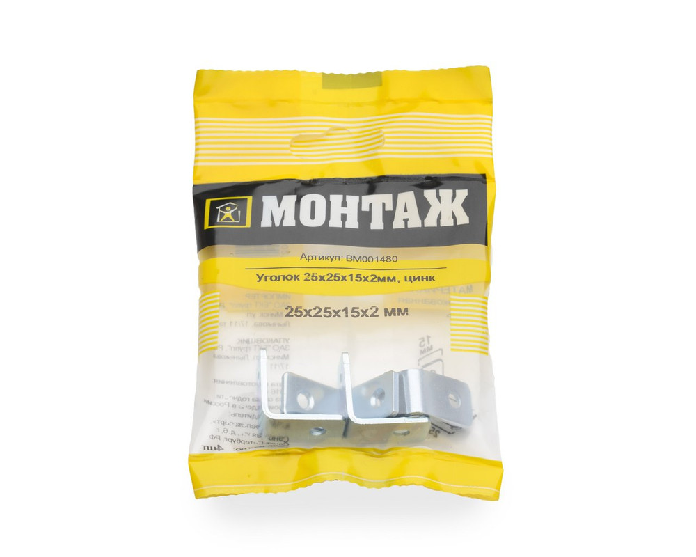 Уголок 25x25x15x2мм, цинк (пакет/4шт)
